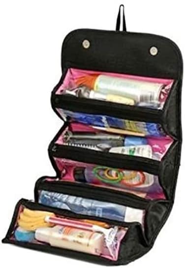 - <p>Roll-N-Go cosmetic bag is your best travel buddy for cosmetics and toiletries. The Roll and Go Cosmetic Bag holds everything in separate compartments. With 4 spacious zippered compartments, Roll-N-Go can hold and store cosmetics, toiletries, jewelry and more. This compact yet roomy cosmetic and toiletry bag stores easily and made with a convenient hanging loop.</p><p>Roll-N-Go Cosmetic Bag</p>