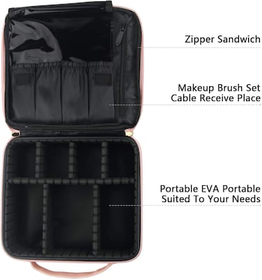Generic Travel Makeup Train Case Makeup Cosmetic Case Organizer Portable Artist Storage Bag 10.3'' With Adjustable Dividers For Cosmetics Makeup Brushes Toiletry (Pink)