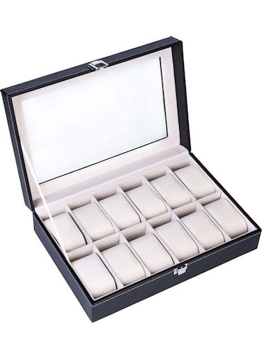 Generic Watch Box 12 Slot PU Leather Top Glass Display Watch Storage Jewllery Case Organizer