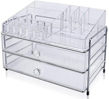 <li></b>Collecting makeup is a lot fun but organizing it is one big headache. Crystal clear acrylic makeup 3 Layer organizer takes the clutter out of your daily cosmetic routine. You don't have to spend big bucks on bulky professional grade cosmetic organizational systems to keep your makeup neat and tidy. These see through containers make a beautiful way to display and organize all your commonly used cosmetics. No more messy counter tops or shoving items in your drawer or bag.<li>PRODUCT FEATURES :<li>Sleek and compact design<li>Ideal for organizing and displaying your makeup and cosmetics<li>Easy to search and find your makeup<li>Color : Clear<li>Material : Acrylic<li>3 layer clear acrylic cosmetic storage box<li>Acrylic<li>Acrylic Makeup Storage<li>Color : Transparent<li>3 layer clear acrylic cosmetic storage box<li>Acrylic<li>Acrylic Makeup Storage<li>Color : Transparent