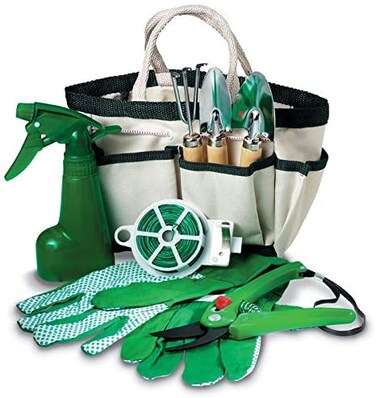 Other 7 Pcs Garden Tools In One Bag, Includes Harrow, 2 Spades, Gloves, Watering Can, Wire And Scissors