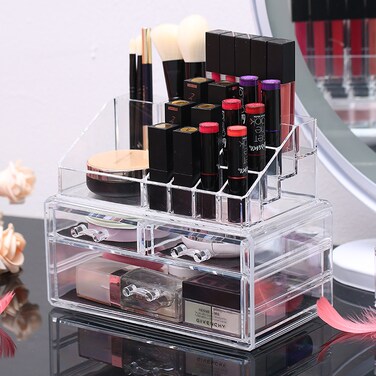 DISASSEMBLY AND ASSEMBLY:The two components can be used separately or stacked together to save more desktop space. To store most cosmetics, perfumes, contact lenses, nail tools, false eyelashes and your jewelry, etc.