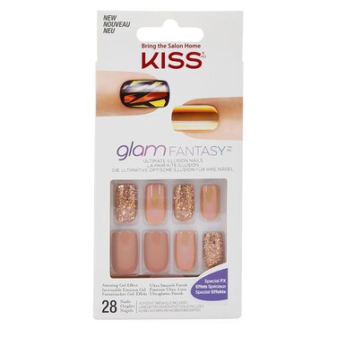 • Kiss Glam Fantasy Ultimate Illusion Special FX False Nails is durable, flexible, and easy to apply, featuring special effects diamond-glitter design and two ways to wear it glue-on or press-on adhesive tabs