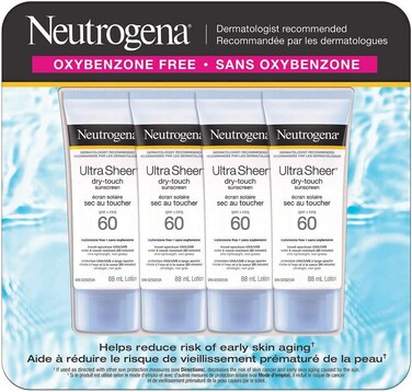 Neutrogena Ultra Sheer Dry-Touch Sunscreen SPF 60, Water & Sweat Resistant lotion, Pack of 4 X 88 ml