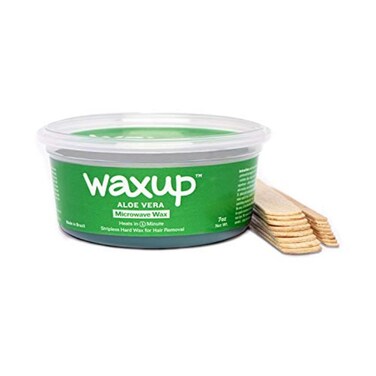 Waxup Microwave Hard Wax Kit, Aloe Vera, 7 Ounces, 8 Medium and 8 Large Wax Sticks, at Home Waxing kit for Women face, Microwaveable Hot Wax Hair Removal for all Body Areas. No-Strip Wax.