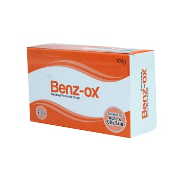 Benz-ox Benzyl Peroxide Soap is a mild skin friendly soap of pH 5.5 containing Benzoyl Peroxide as the active ingredient. Benzoyl peroxide gradually liberates Oxygen (in the presesnce of water) which kills bacteria and treats acne vulgaris and acne rosacea