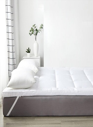 Microfiber Quilted Mattress Topper With 4 Corner Elastic Straps 6cm Thick 150x200cm