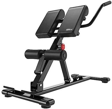 - • ★-3-step adjustment, easy to adapt to different movement needs (30 ° -50 °). Rugged structure: with triangular design, making it sturdy and durable. The maximum load capacity is 330 pounds. • ★-he hip cushion has 7 levels, which can easily meet different heights. The foam pads on the buttocks keep the body firm during exercise. The high-density foam roller will provide comfortable support when used for a long time.. • ★-he easy-to-grip handle, whether you are exercising your back or stomach, when you need to rest, the extended handle is always easy to reach.. • ★-The widened base stabilizes movement and refuses to roll over. Convenient storage, foldable design allows you to conveniently store the Roman chair with other sports equipment in the corner. • ★-Multifunctional Roman chair, free movement, one machine finished. The four-in-one is fully functional: goats stand up, push-ups, weight-bending flexion, Roman flexion