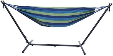 Yulan Comfortable Large Camping Portable Hammock With Ropes For Hanging Rainbow Fabric Soft Canvas Hammock Bed Cotton Hammocks For Outside Backyard Patio Garden Indoor, Green With Stand, Yl21529-598