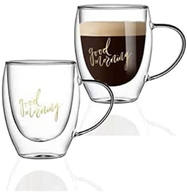 - • A simple design style clear glass cup with a Good Morning logo,It's very light, thin, and durable.1CHASE glass coffee mug lets you enjoy your drink, especially share with your family and best friend. let us cheers for life.