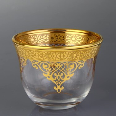 - WONDERFUL DECORS: Turkish Cawa cups set of 6 comes with arabic Golden decors MAKE A DIFFERENCE: Arabic tea cups are best choice to have a pleasant tea time with arabic decorative cups. You can also serve coffee and espresso with these cups. PREMIUM QUALITY with GOLD DECORS: Glass tea cups and saucers set decors are made out of premium glasses made of quality raw glass material and crafted by arts and dyed with premium dyes by talented artisans in Turkey. It is totally handmade and 75 ml. EASY WASHABLE: You can wash decorative glass tea cups set easily using any soft sponge and dishwashing soap." Beautiful addition to any cafe, restaurant and definitely to your own home.