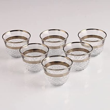 ABKA Turkey Vintage Turkish Tea Glasses Cups Set of 6 for Party - (Arabic tea cups) 6PCS CAWA CUPS SET-SILVER DKR