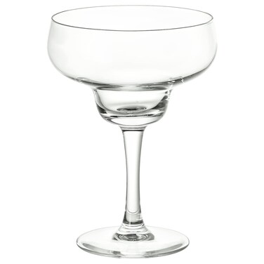 A margarita glass that is just as suitable for refreshing drinks as for cold desserts. The tall stem helps to maintain the cool temperature when you hold the glass. The glass has a low, wide and large bowl which gives plenty of room for ice, so the margarita can be enjoyed ice-cold and your experience of it is enhanced. Wash this product before using it for the first time. The material in this product may be recyclable. Please check the recycling rules in your community and if recycling facilities exist in your area. Glass. Dishwasher-safe. No cadmium or lead added. We want to have a positive impact on the planet. That is why by 2030, we want all materials in our products to be recycled or renewable, and sourced in responsible ways.