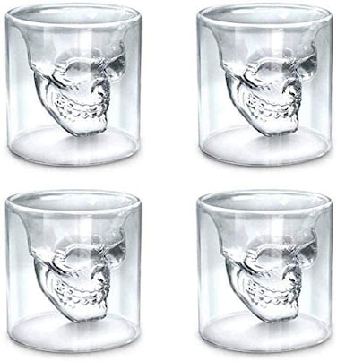 Lushh Skull Wine Glass, Double Layers Transparent Crystal skull Head Glass Tea Cup For Whiskey Wine Vodka Bar Club Beer Wine Glass, 4 PCS Set 250 ML