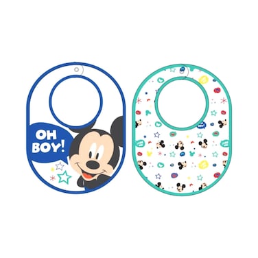 The Disney Mickey Mouse Cotton Bib MCPL2470 is a set of two multicolour bibs featuring the iconic Mickey Mouse character.