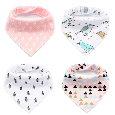 - Drool with Style and Eat with Style! Our Exclusive range of Bandana Bibs are super soft and have adorable designs. These organic cotton made bibs are soft on your little one’s tender and delicate skin. Having an extra layer of fleece makes it super absorbent. The two nickel free adjustable snaps make it eligible for different sizes. Comes in a set of 4 with different styles which compliments to your baby’s dress! SPECIFICATIONS • Product Dimensions(cm) : 3330 • Product Weight(kg) : 0.025 • Packing Dimensions(cm) : 2520 • Packing Weight(kg) : 0.13 • Material : Cotton+Poylester Fleece • Package Includes : 4*Bibs FEATURES • Extra Layer of fleece makes it super absorbent • 100% Organic Cotton for that extra comfort to the baby • Made from adjustable nickel free snaps for creating two different sizes • 4 patterns in one pack to match baby’s dress and compliment it • All Metal used on Bibs and Pacifier Holders is Nickel-Free, No BPA, No Lead, No Phthalates, No Latex. • Recommended Age – 3-24 months