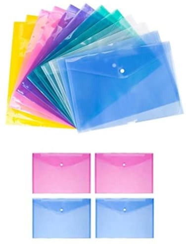24Pcs A4 Size Document Folder with Snap Button Clear File Folder Holder Organizer Bag for School Office White