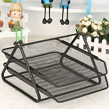 Desk File Organizer Barbed Wire Metal Twolayer File Holder Data Tray File Tray Rustproof Magazine Bar Black Desk File Organiser File Holder Color Black Size 350x302x190mm
