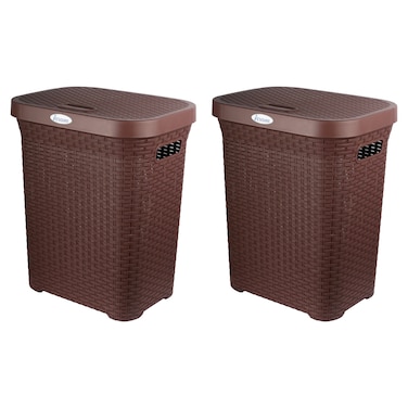 Esqube Laundry Basket with Lid Brown 50L Capacity Pack Of 2