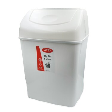 Gab Plastic Waste Bin with Swinging Lid - 8 Liters, White