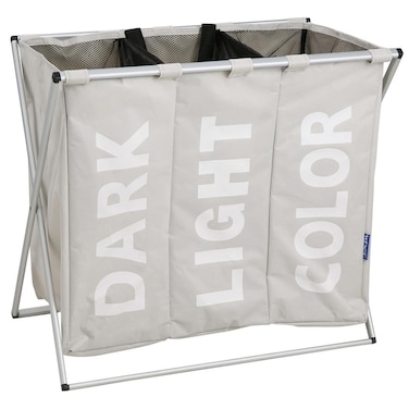 Wenko Aluminum 3-Compartment Laundry Bag allows you to segregate your dark, white and colored laundry, each with a capacity of 43 L Laundry Bag is made of fabric so that it’s easy to haul from the bedroom to the laundry area Laundry Bag also folds flat so you can store it easily when empty The laundry bag may also be used to organize such things as toys and other items The laundry bag is made of aluminum frame & polyester fabric The laundry bag weighs 984 g and measures 63 x 38 x 57 cm in size