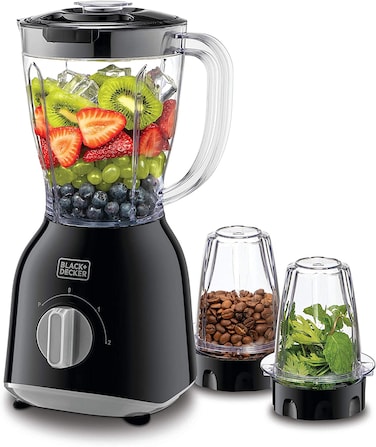 Black+Decker 400W 1.0L Blender With 2x Grinder Mills, Black - BX365E-B5