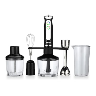 Geepas 5-In-1 Hand Blender - Portable LED Indicators |Chopper / Food Processor | Whisk |2 Speeds With 8 Variable Speeds, Stainless Steel Blade | Perfect Smoothies And Grinding Coffee| 2 Years Warranty