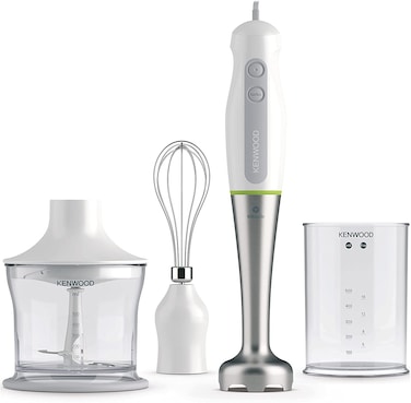 KENWOOD Hand Blender 700W with 500ml Chopper, 500ml Beaker, Whisk, Stainless Steel Wand, Triblade Technology HDP109WG White