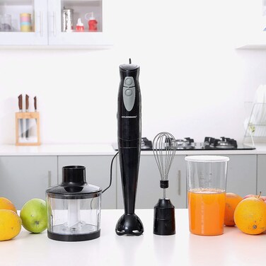 Introducing the Olsenmark Hand Blender with Chopper - the simple way to bring confidence to your cooking. The Olsenmark Hand Blender with Chopper allows you to create delicious smoothies and shakes, blend soups and sauces with confidence. The set also comes with a blending jug, chopper and whisk accessories!Power - This Hand blender comes with 200W power which is great for experimenting with baking, making smoothies, shakes, sauces and much more.Health for Your Family - Olsenmark hand blender made of Food-Grade Material 600ml jar with lid and Stainless Steel Blade is of premium quality and high durability. Perfect for making juice, milk shakes, smoothies, meringue, or baby food.Detachable Stick & Hang Up Loop - The detachable Blending leg is easy to clean and takes up minimal storage space. An additional hang up loop is included, for convenient hanging of your stick hand blender, which is space-saving.