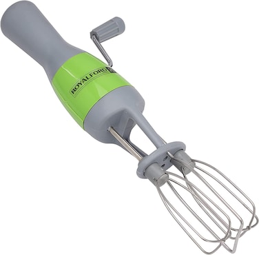b'Get the powerful range of manual hand blenders you always wanted from Royalford. This dual-beat hand blender with five times faster performance is just the thing you need for everyday use. It is made from high-quality stainless steel and ABS material and is built to last a lifetime. The heavy-duty gear system allows you to operate smoothly and effortlessly. The blender is suitable for beating eggs, cream, dips, sauces, smoothies, lassi, milkshakes, buttermilk, etc. and does the job quickly and efficiently. The stainless steel head is made of quality materials and is resistant to corrosion, breaking, and bending. The blender features a turning knob for easy and comfortable operation. The blender is ergonomically designed to provide a firm, non-slip grip while whisking. Its compact and handy design makes it simple to use on a daily basis. The blender is easy to clean, easy to store, and easy to maintain. The blender works seamlessly without electricity and is convenient for small baking needs. The blender is elegantly designed to fit well in all types of bowls and containers. The product is engineered to last a lifetime with its unmatched strength and durability. The dual-beat blender measures 30.5x11.5cm in size and is grey in colour.'