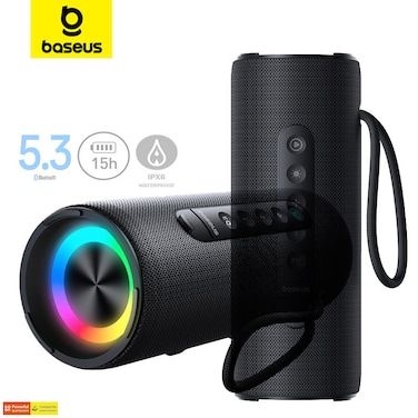 The Baseus AeQur VO20 Wireless Portable Speaker is a speaker with RGB lights and powerful 15W quad drivers that work with Bluetooth 5.3 and support TWS pairing. It has IPX5 water resistance and can offer up to 15 hours of continuous music. Ideal for outdoor activity.