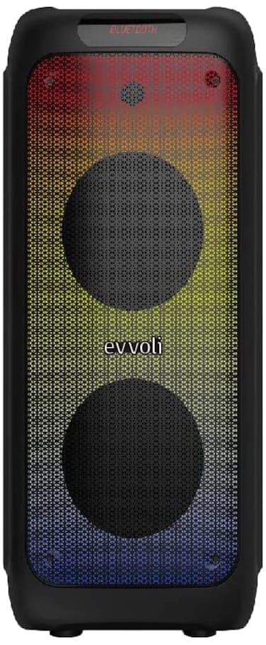 evvoli Portable Party Speaker Bluetooth With Two Wireless MIC, Built In Lights and Splashproof Design 160W EVAUD-PT160B