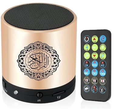 - HD Quality Qur'an Audio, Qur'an Translation Audio, Qur'an Ayah by Ayah Translation, Qur'an Word by Word Translation, Complete Tafseer Audio, FM Radio, MP3 Player, Fast Surah Selection (New), Hot Key MP3, Remote Control, 3 Watt HD Loud Speaker, Rechargeable Li-Battery (USB Charging), Micro SD Card Slot to Increase the Memory.