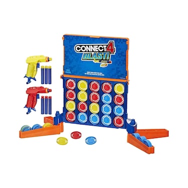 • Connect 4 gameplay meets Nerf dart blasting! The Connect 4 Blast! game is an exciting and active game in which players strategically shoot at the coloured discs using the included Nerf blaster and Nerf foam darts