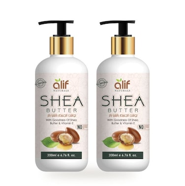 Alif Naturals Organic Shea Body Butter Lotion, Cocoa Butter Moisturizing Lotion With Vitamin E, Helps In Nourishment And Gives A Radiant Look Overtime, 200ML, Pack Of 2