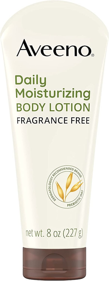 - <li>8-fluid ounce bottle of Aveeno Daily Moisturizing Body Lotion with Prebiotic Oat intensely nourishes dry skin with clinically proven moisturization that lasts for 24 hours. To use, apply daily as often as needed<li>Nourishing lotion contains a unique soothing prebiotic oat formula that absorbs quickly, locks in moisture to nourish and help improve skin's natural moisture barrier, leaving your skin soft, beautiful and healthy looking<li>Moisturizing lotion works to help prevent, protect, and nourish dry skin. It replenishes moisture for softer and smoother skin. The gentle formula of the daily body lotion is free of fragrances, parabens and dyes and is suitable for sensitive skin<li>Lotion is non-greasy, non-comedogenic, and gentle enough for daily use as part of a regular beauty and skincare routine. From Aveeno, a dermatologist recommended brand for over 65 years<li>The Aveeno brand’s goal is to have 100% recyclable, reusable or compostable packaging by 2025. We’ve relied on nature for generations. Now we’re protecting its future