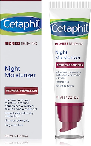CETAPHIL REDNESS RELIEVING NIGHT MOISTURIZER: Specially formulated for redness-prone skin to provide continuous hydration that helps reduce the appearance of redness due to dryness overnight