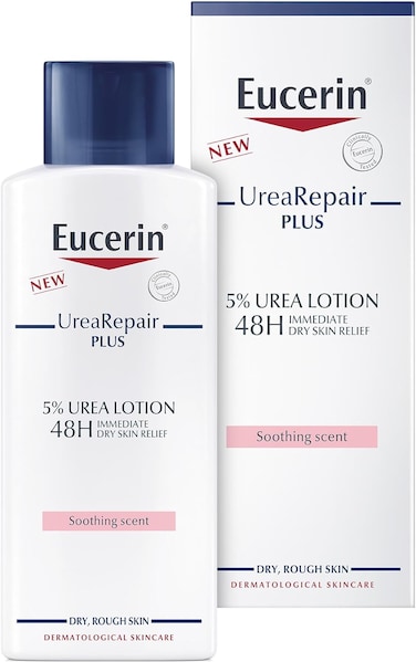 Eucerin UreaRepair PLUS Body Lotion- the formula with a unique combination of ingredients for immediate relief of dry skin signs and long-lasting resilience to dry skin - now available with a soothing scent. Eucerin UreaRepair PLUS 5% Urea body lotion with Soothing Scent gives dry, rough, and bumpy body skin the daily care it needs. It contains a unique combination of ingredients - Urea, Ceramide and other natural moisturizing factors (NMFs) - which bind moisture in and repair skin´s natural protective barrier to prevent further moisture loss. The formula has been clinically and dermatologically proven to deliver immediate relief and intense, long-lasting moisturization, delaying dryness and roughness for up to 48 hours. Skin is intensely moisturized and looks and feels smooth and soft. When the skin on our bodies has a stable barrier function, it protects us from external irritants and can maintain its optimal level of hydration. But when that barrier is impaired, skin can lose moisture and look and feel dry as a result. The dry skin lotion is suitable for those with mature skin and/or diabetes. It can also be used as adjunctive care and It can be used for daily moisture. How to use: 1. Gently massage the lotion into your skin until completely absorbed 2. Apply as frequently as required. Consult a physician before using in combination with topical medications or on infants and toddlers.