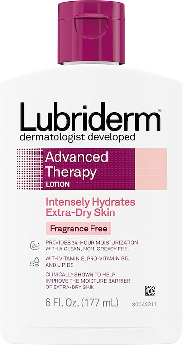 Lubriderm Advanced Therapy Fragrance-Free Daily Moisturizing Lotion helps relieve extra-dry skin. From a dermatologist-developed brand, this moisturizing lotion is clinically shown to help moisturize for 24 hours, and transform dry skin into healthy-looking, more resilient skin. Formulated with vitamins E and Pro-Vitamin B5 plus lipids, this fragrance-free lotion replenishes and strengthens your skin's moisture barrier. Plus, its formula is non-greasy with a clean, comfortable feel.