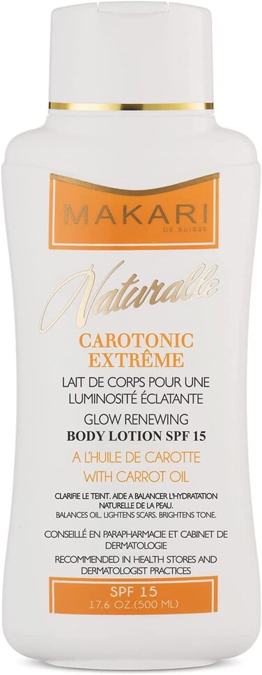 Makari Naturalle Carotonic Extreme Body Lotion With Carrot Oil For Dark Spots, Acne, Scars Treatment (17.6Oz, SPF 15)