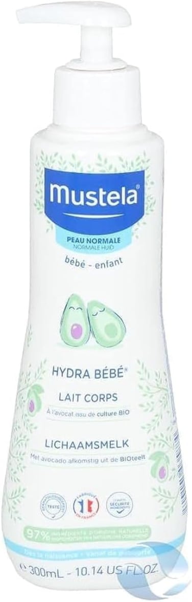 Mustela's best-selling daily moisturizing hydra baby body lotion provides immediate and long-lasting moisture for dry baby skin. Formulated with jojoba oil, sunflower oil, vitamins e and f, and our signature avocado perseose, its non-greasy formula penetrates immediately, leaving the skin silky-smooth and moisturized. hypoallergenic and specially formulated to minimize the risk of allergic reactions. Tested under dermatological and pediatric control.