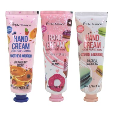 Petite Maison Hand Cream Strawberry Biscuit Sweet Dreams And Colourful Macarons 30ml Pack of 3