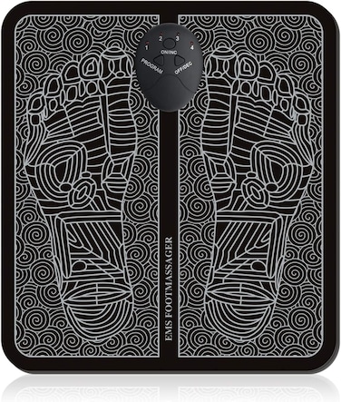 - <p><li>The massager adopts low frequency pulse technology(EMS) to stimulate foot, ankle and calf muscle, which helps promote blood circulation and relax your body.<p><li>6 or 4 adjustable modes for you to choose from, it can relieve pressure, muscle pain and improve your sleep quality.<p><li>Made of PU and EVA foam cotton d material, you can clean it with a wet towel.<p><li>9 levels massage strength, you can choose the one suits you for differrnt needs.<p><li>Low noise operation, can be used at various situations, such as watching TV, reading, working etc.