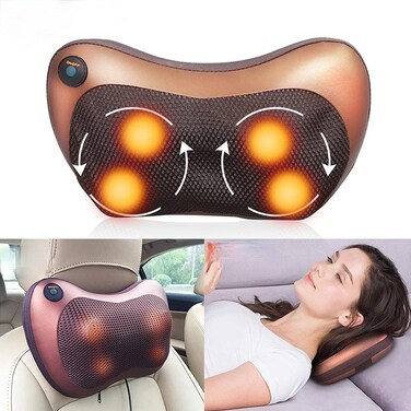 • <p><li>4 Kneading Massage Nodes 4 Deep-Kneading Shiatsu Massage Nodes mimic the kneading and penetrating motions of a real massage therapist's hands, helps with relaxing and relieve muscle tension in the car, office, and home.<p><li>Ergonomic W-design Ergonomic W-design makes this shiatsu massager fits perfectly your neck and body. It also can be used for shoulder, lower and upper back, calf, foot and thigh.<p><li>Advanced Heating Heating function(up to 45℃) with separate control brings a further comfort to tight muscles, promoting better massage experience. 15 minutes auto-off function and in-built overheat protection further ensure your safety.<p><li>Easy to Use Anywhere & Portable With power adapter and car adapter, you can enjoy a deep tissue massage in your home, car, office or anywhere. Portable size: 12.8’’Wx20’’H<p><li>Adjustable Straps If you are looking for a massager comfortable enough to lean on while massaging, this neck massage pillow is a good choice. The straps at the back are easy to use and adjustable, which allows you to secure this massager to most chairs and cars.