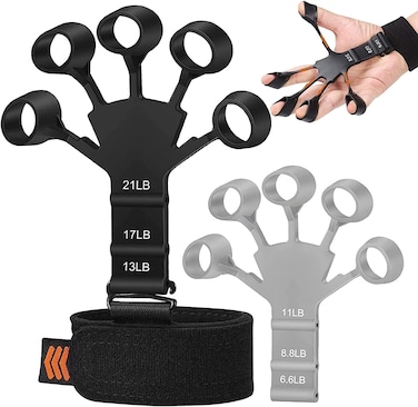 Finger Strengthener, Grip Strength Trainer, 6 Resistant Level Finger Exerciser, Hand Exercisers for Strength, Hand Grip Strengthener for Patients Strength Training (Black+Grey)