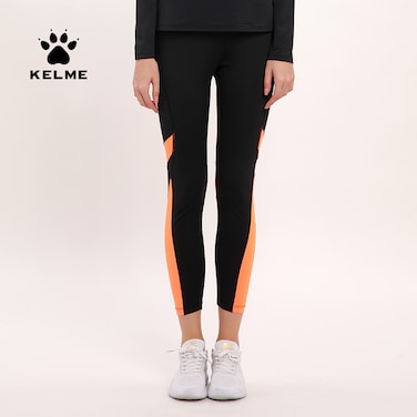 Kelme Women Running Tight Trousers, Fitness,Yoga Pants (Black/Orange) - Size S.