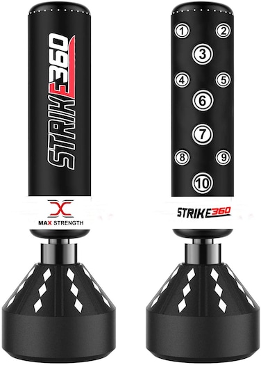 Max Strength Max Strength Freestanding Punching Bag Kickboxing Set MMA Heavy Bags Muay Thai Training Gloves Punching Mitts Wrist Wraps Headguard Martial Arts (Black/White Punch Bag Only, 5.5Ft)