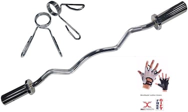 Max Strength Olympic Curl Bar With Spring Collars Weight Lifting Bar With Rotating End 47" Plus Cotton Mesh Backs Weight Lifting Gloves Genuine Leather Multi Color