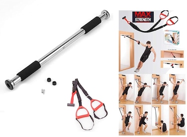 Max Strength Portable Home Adjustable Door Way Iron Gym Chin-Up Push-Up Sit-Up Pull-Up Dip Multi Function With Adjustable Door Anchor Fitness Gym Body Work Out Suspension Trainer