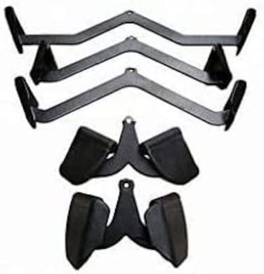 Maxstrength 5-Piece Power Grip Barbell Machine Cable Attachment Handle Set, Bar Press Down Bar Cable Attachments Bar Multi Gym Attachment Bar Pro Tricep Handgrips & Hanger Bar